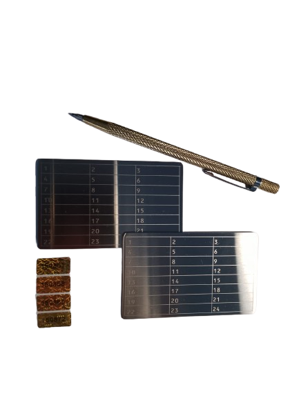 Besonderheit: Nicht biegsam, beidseitig gerastert gelasert für 24 Seed Phrases